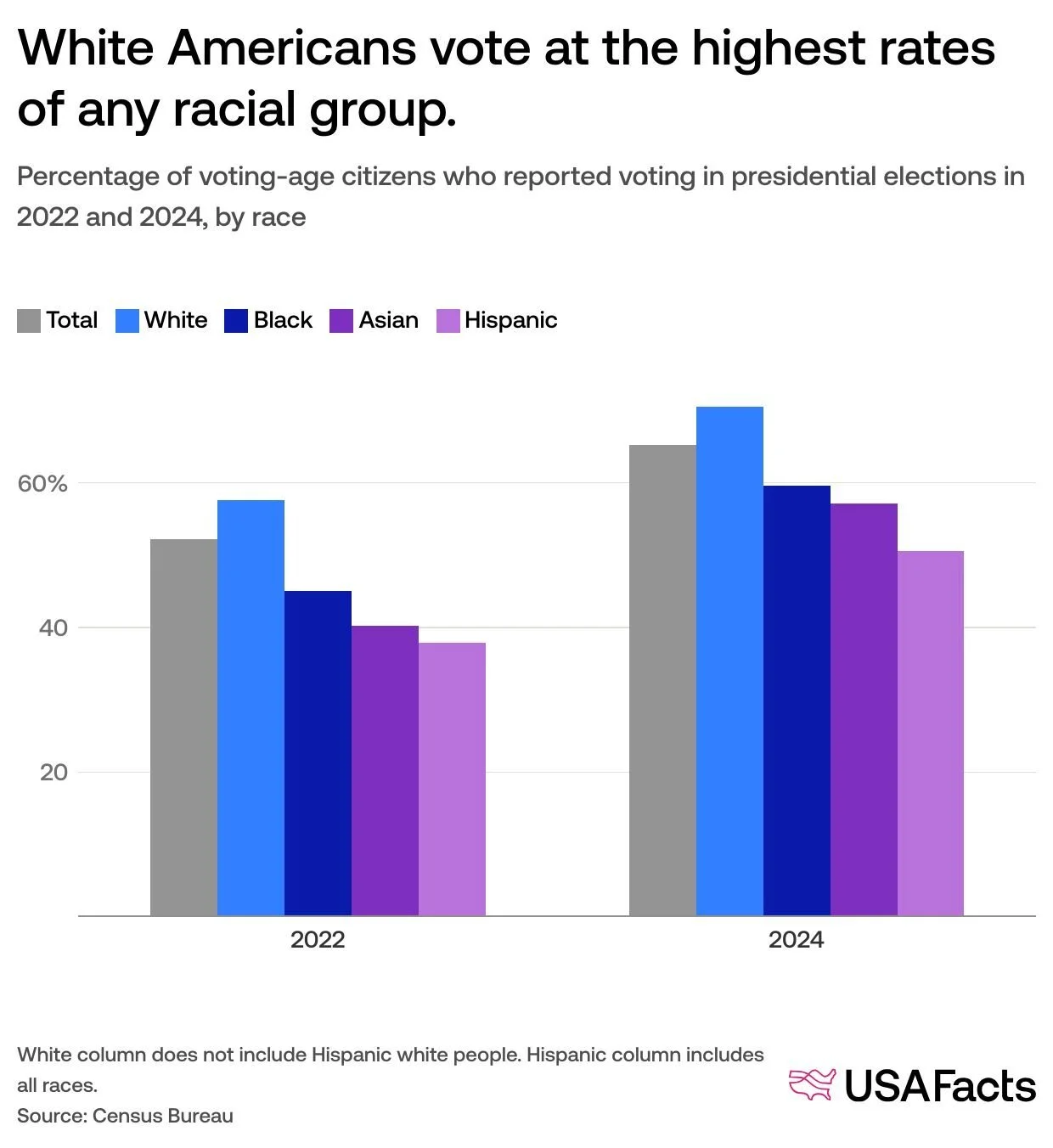 6. Non-Hispanic white, Black, Asian, and Hispanic voters all had a decrease in turnout from the 2020 election. Hispanic voters saw the largest decrease, at nearly 6 percentage points. Why do you think that is?