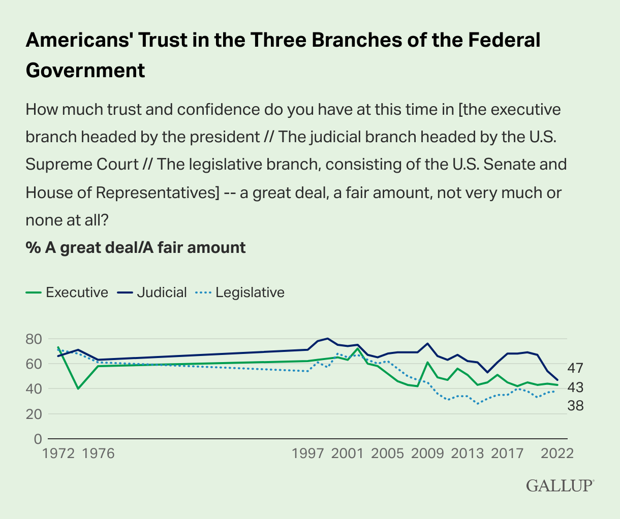 Read the Gallup survey on Approval of the Supreme Court. Or check out this interactive guide to where the Supreme Court Justices sit during oral arguments.