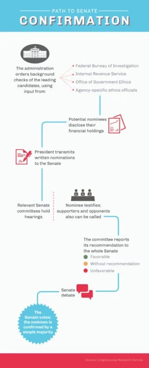 Whenever a U.S. president nominates someone to fill a position in his administration — whether it’s just after the election or another time during his term in office — that nominee’s appointment must be confirmed by the U.S. Senate. Somewhere between 1,200 and 1,400 government positions require confirmation. This process is time consuming. Do you think the U.S. government and political system would be better if we removed Senate confirmation hearings?