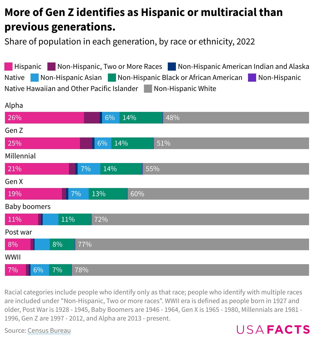 Describe one change in ethnic and racial diversity that has happened in the American generations.